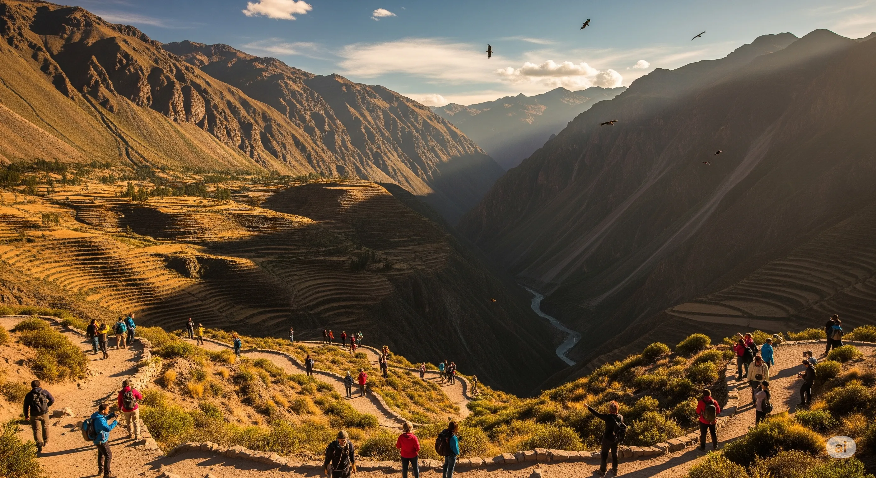 Después de un desayuno temprano, nos dirigiremos al mirador de la 'Cruz del Cóndor', el punto más esperado del viaje. Aquí, tendrás tiempo para admirar la profundidad del cañón y, con suerte, el majestuoso vuelo de los cóndores. De regreso a Chivay, visitaremos los pueblos de Pinchollo, Maca y Yanque, y los miradores de Antahuilque y Choquetico. Almorzaremos en Chivay (no incluido) y luego emprenderemos el viaje de retorno a Arequipa, llegando aproximadamente a las 5:30 PM.